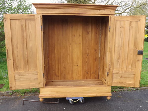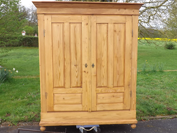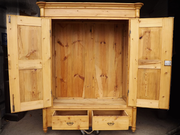 Frisch restaurierter, antiker Weichholzschrank