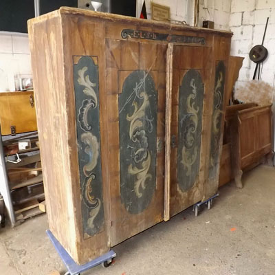 Preiswerter Lagerverkauf: wohnfertig restaurierte Originalmöbel diverser Holz- und Stilarten: Klassik, Landhaus, Design, Vintage, Mid-Century und Shabby-Chic. Kleiderschränke, Wäscheschränke, Kommoden, Sekretäre, Nachtkästen, Esstische, Küchentische, Stühle und Stuhlsätze, etc. Traditionelle Schellackpolituren, geölte Oberflächen, farbige Fassungen, Wachspolituren. |