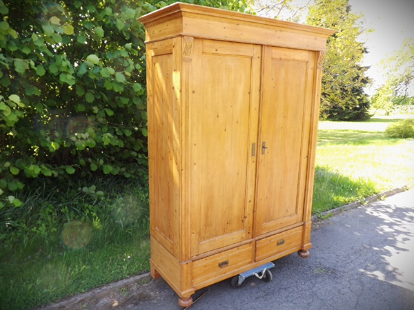 Wohnfertig aufbereiteter, antiker Weichholzschrank